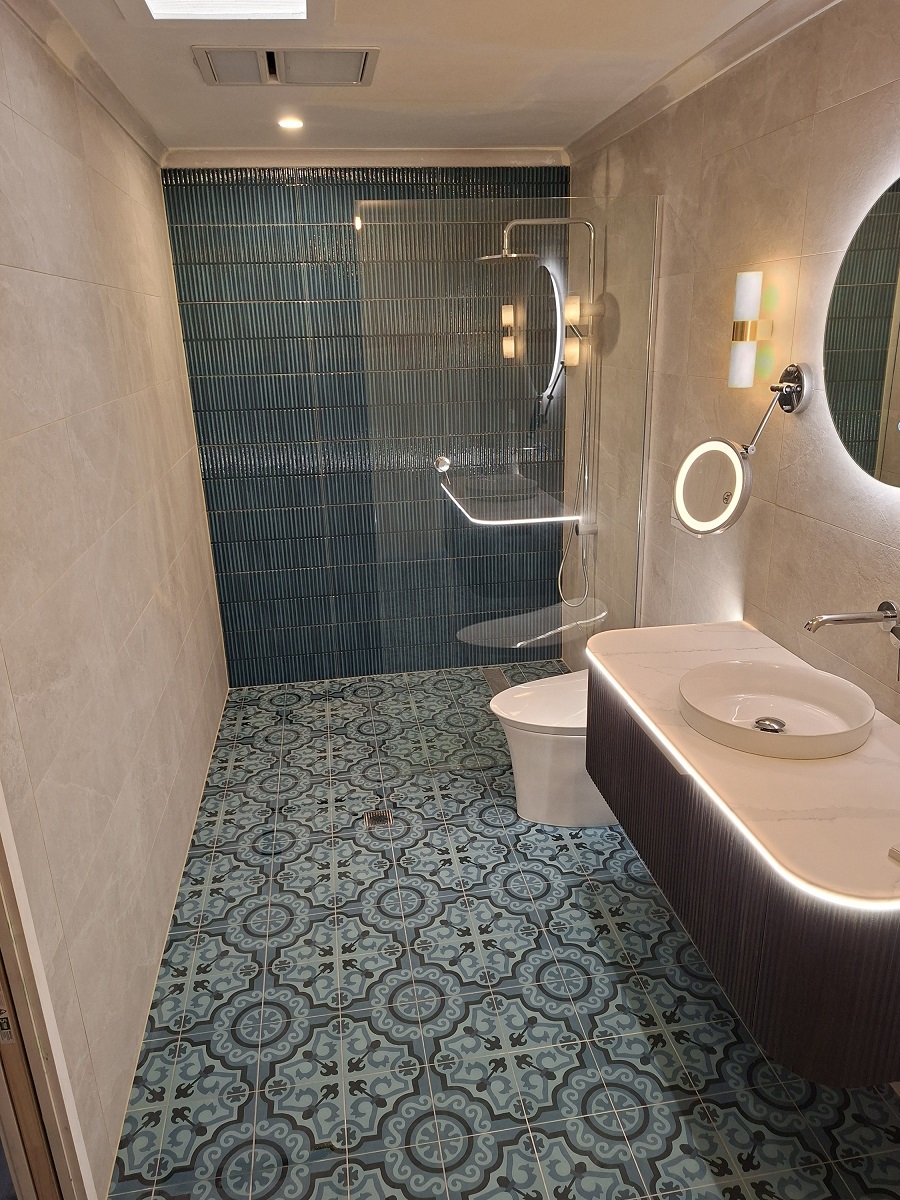 What you get: So at the high end, for prices of bathroom renovations you should be prepared for $24-30,000 to renew your bathroom. Please bear in mind that additional requirements would add to this expense, for example under-tile heating, wall hung vanity, ceiling mounted shower head, etc. – But just imagine the transformation in style and value to your home! Not to mention how great it feels to relax in the new sanctuary you can call your own amazing space. Unconditional 7 year tiling and waterproofing integrity guarantee!